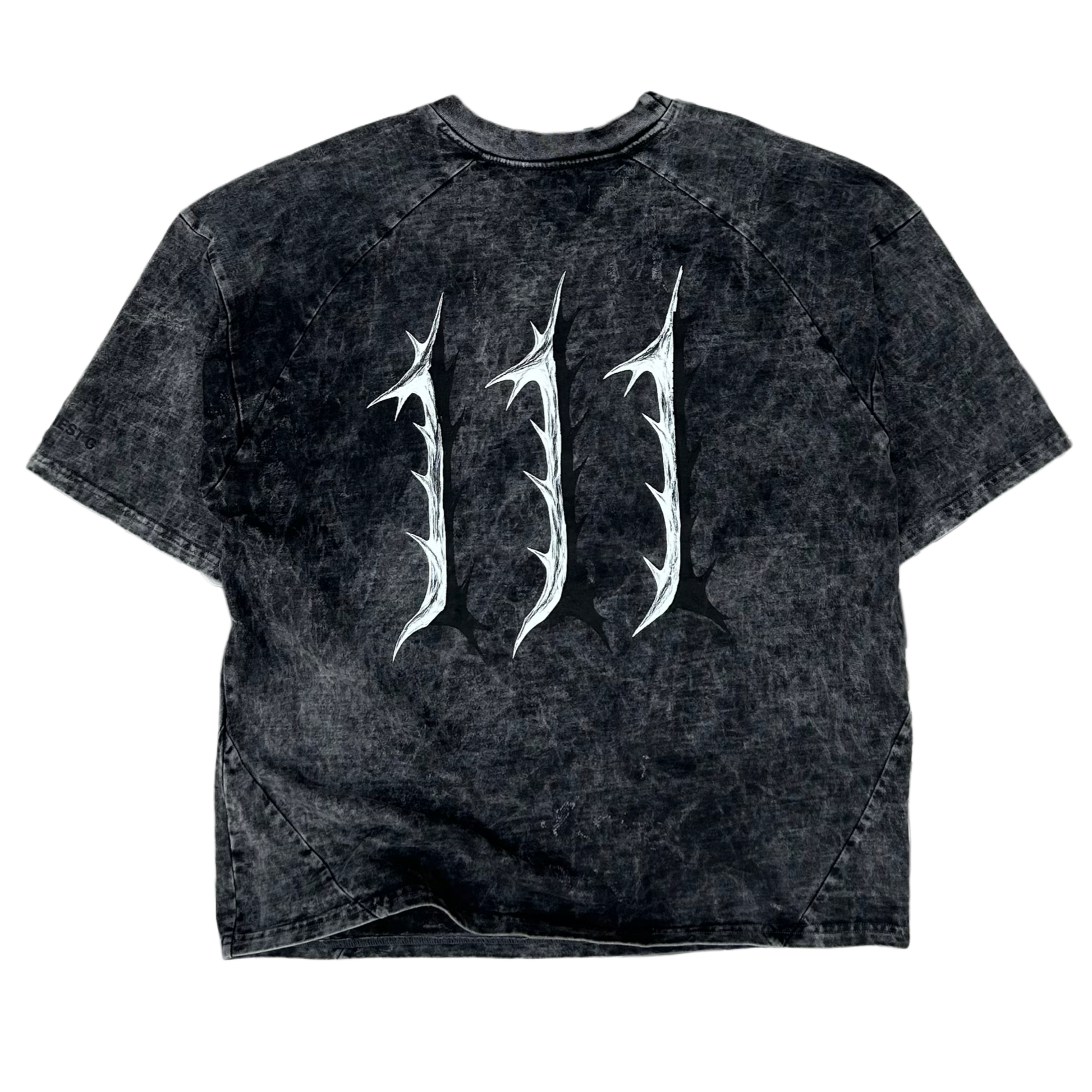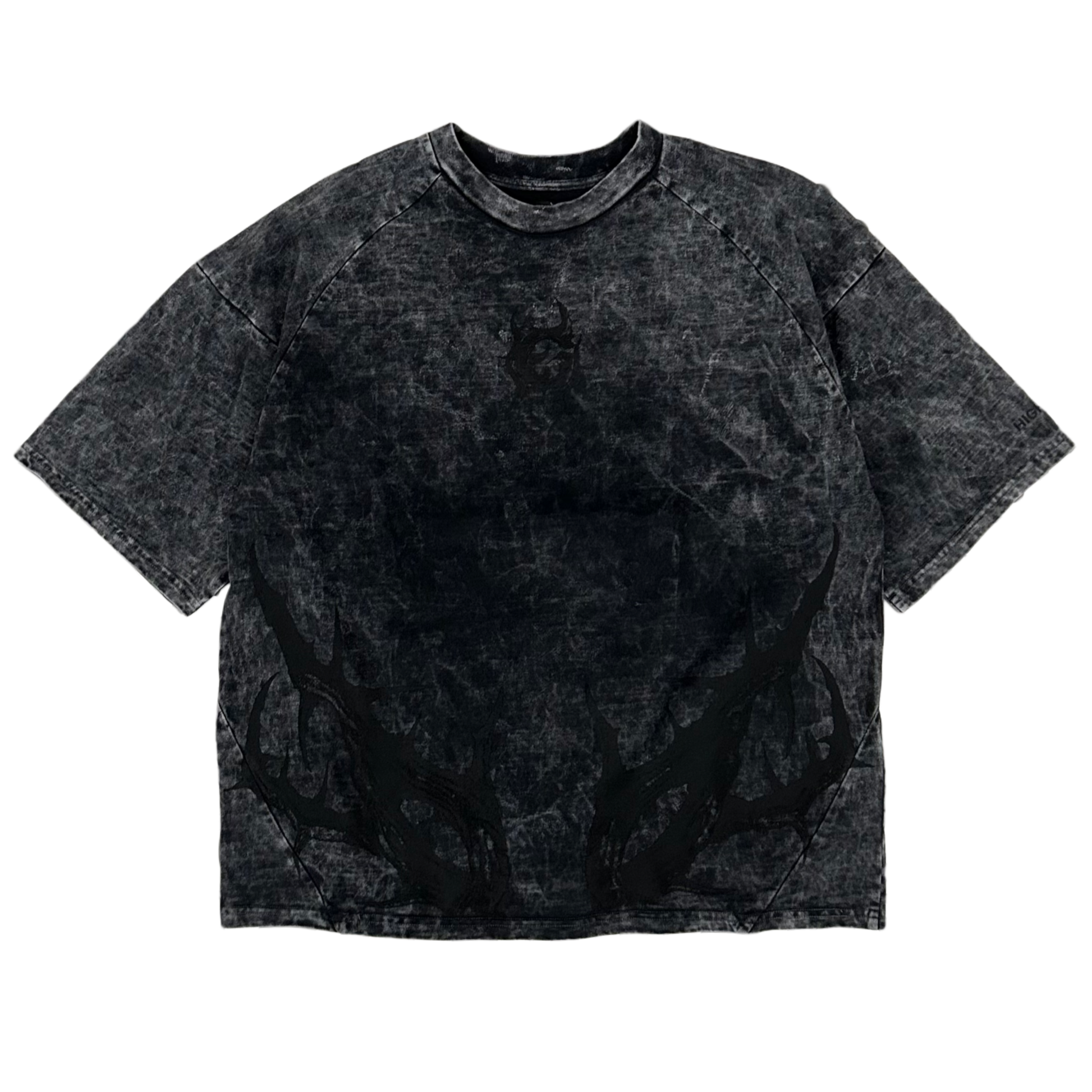 Playera de algodón, con proceso de lavado acid wash y estampado en serigrafia frente y espalda.