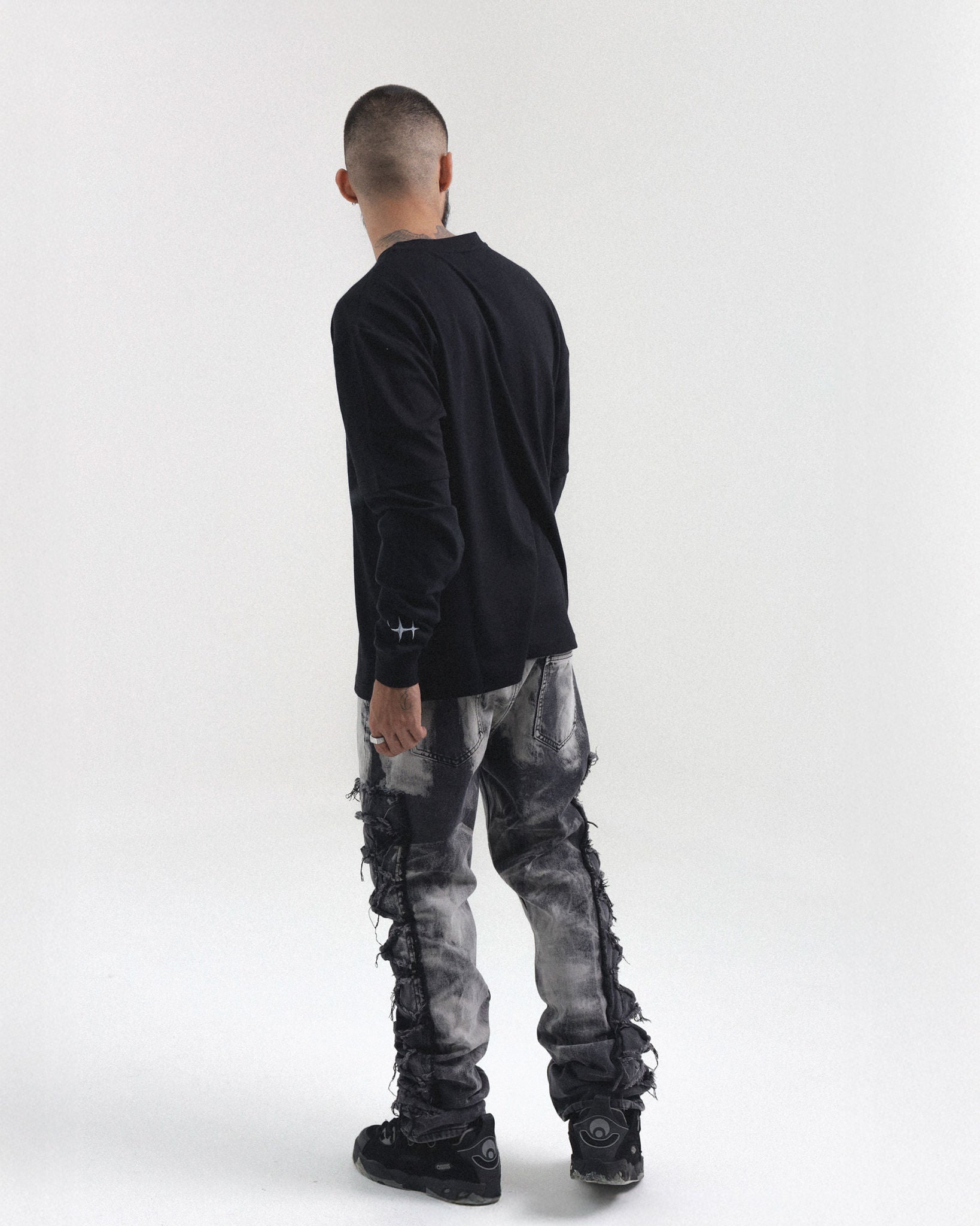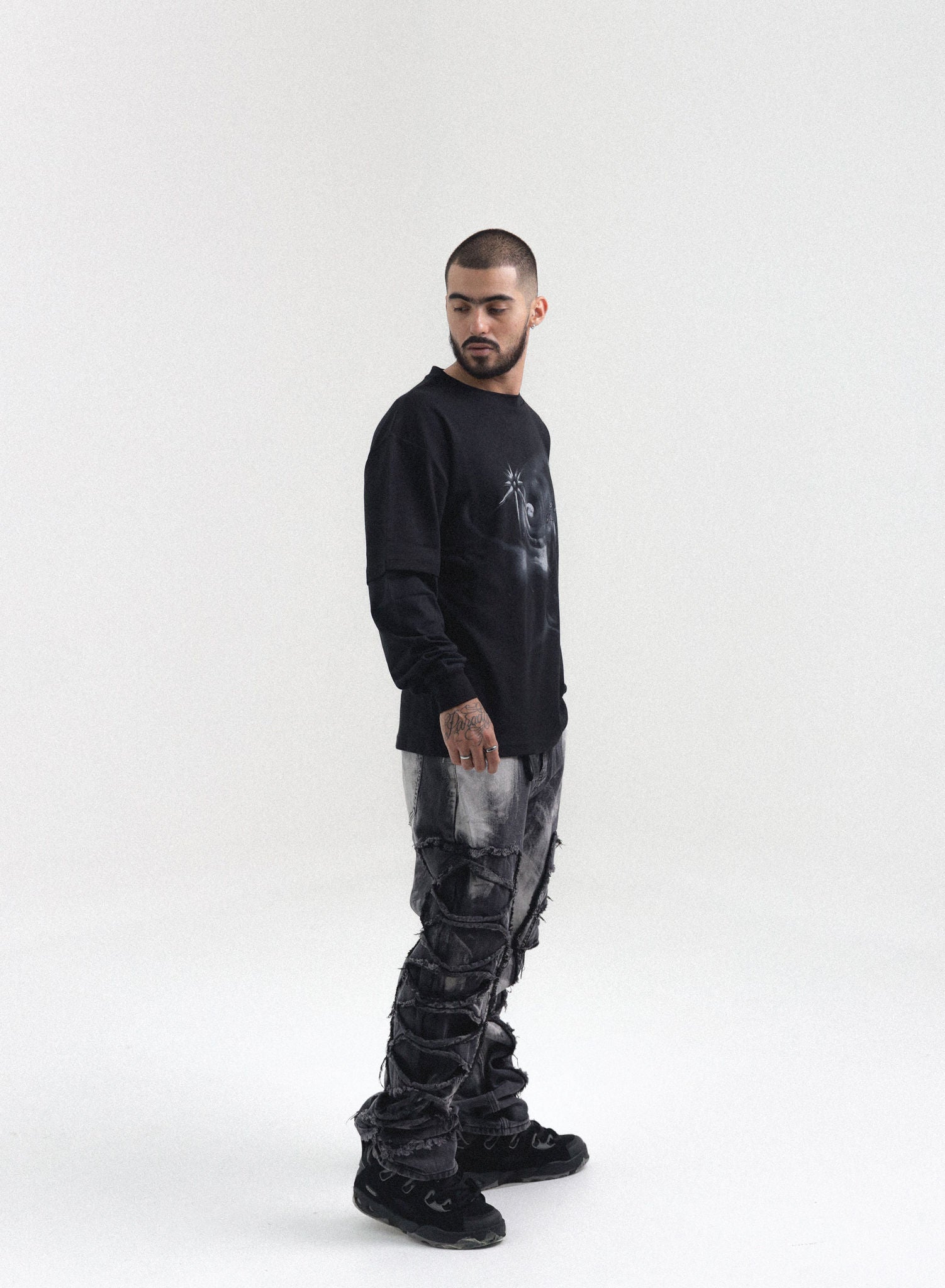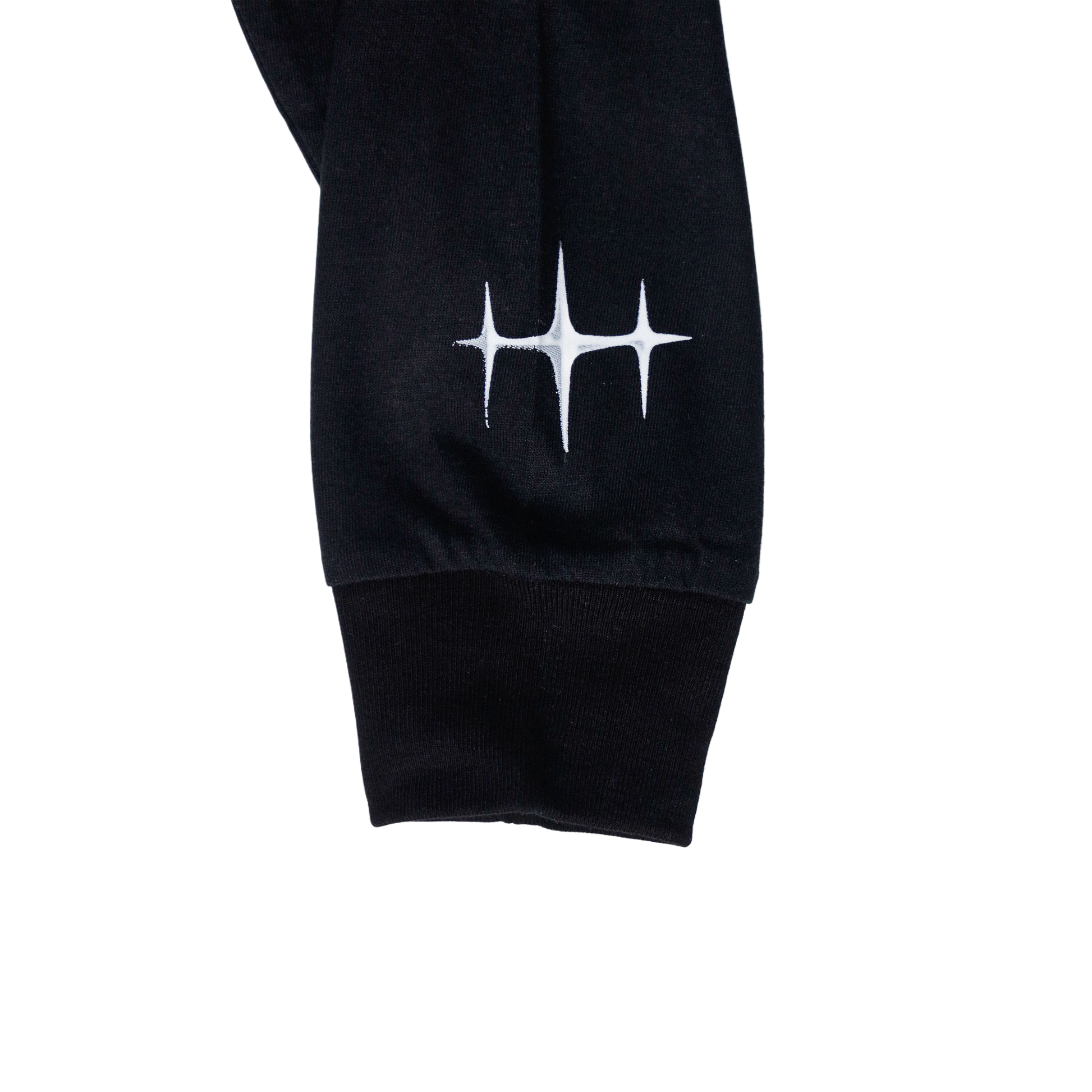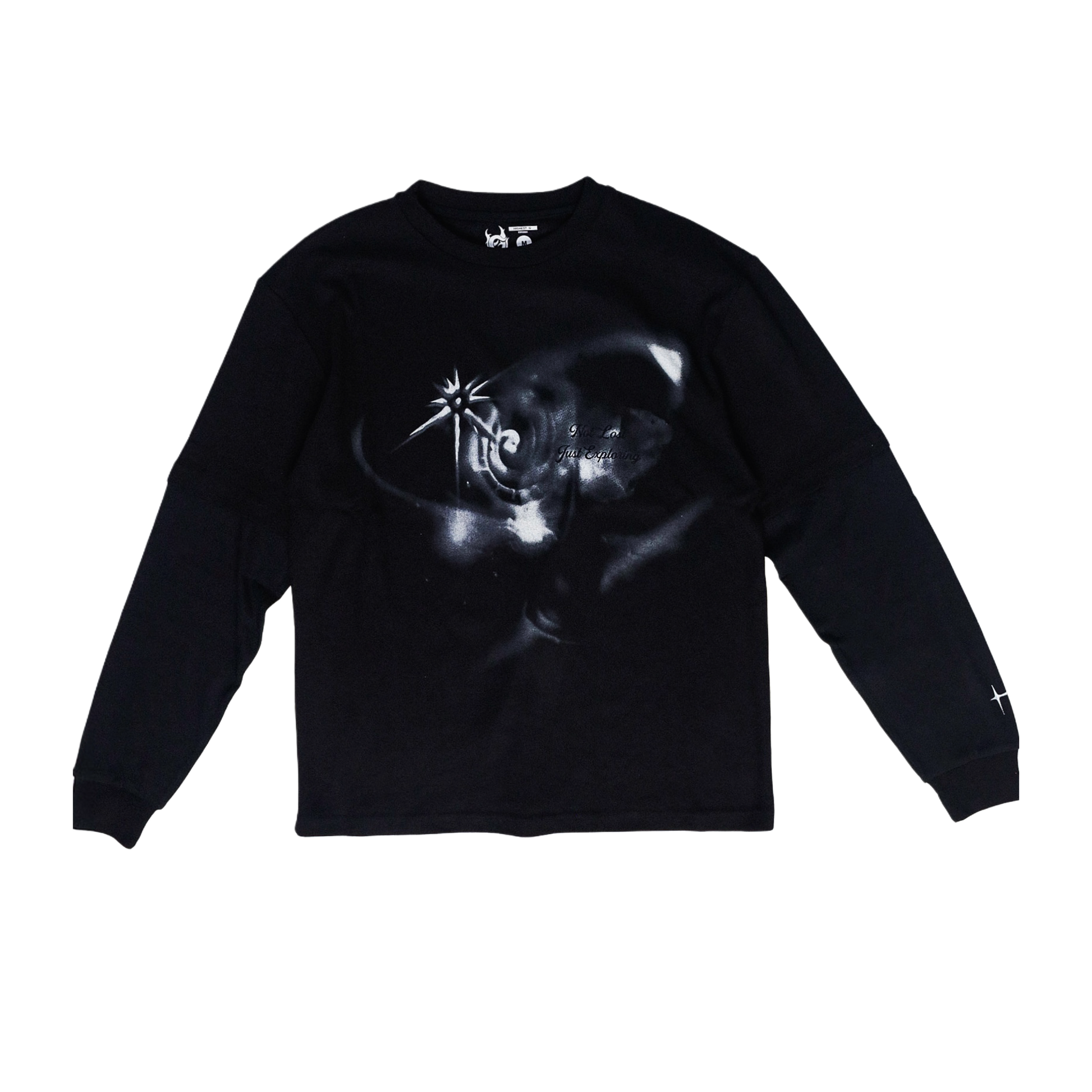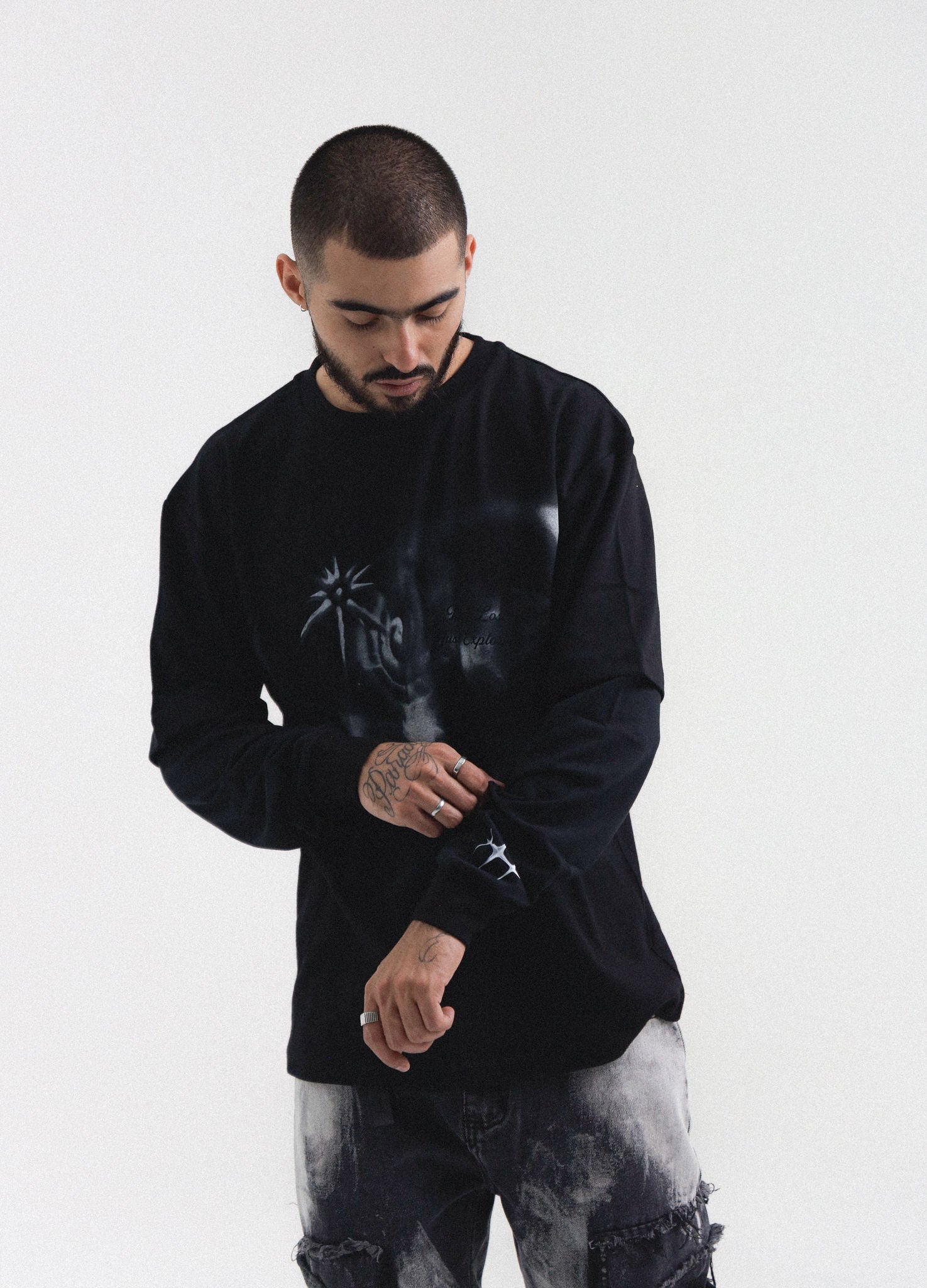 Playera manga larga con manga corta. Diseño en serigrafía y detalle de estrella en manga.