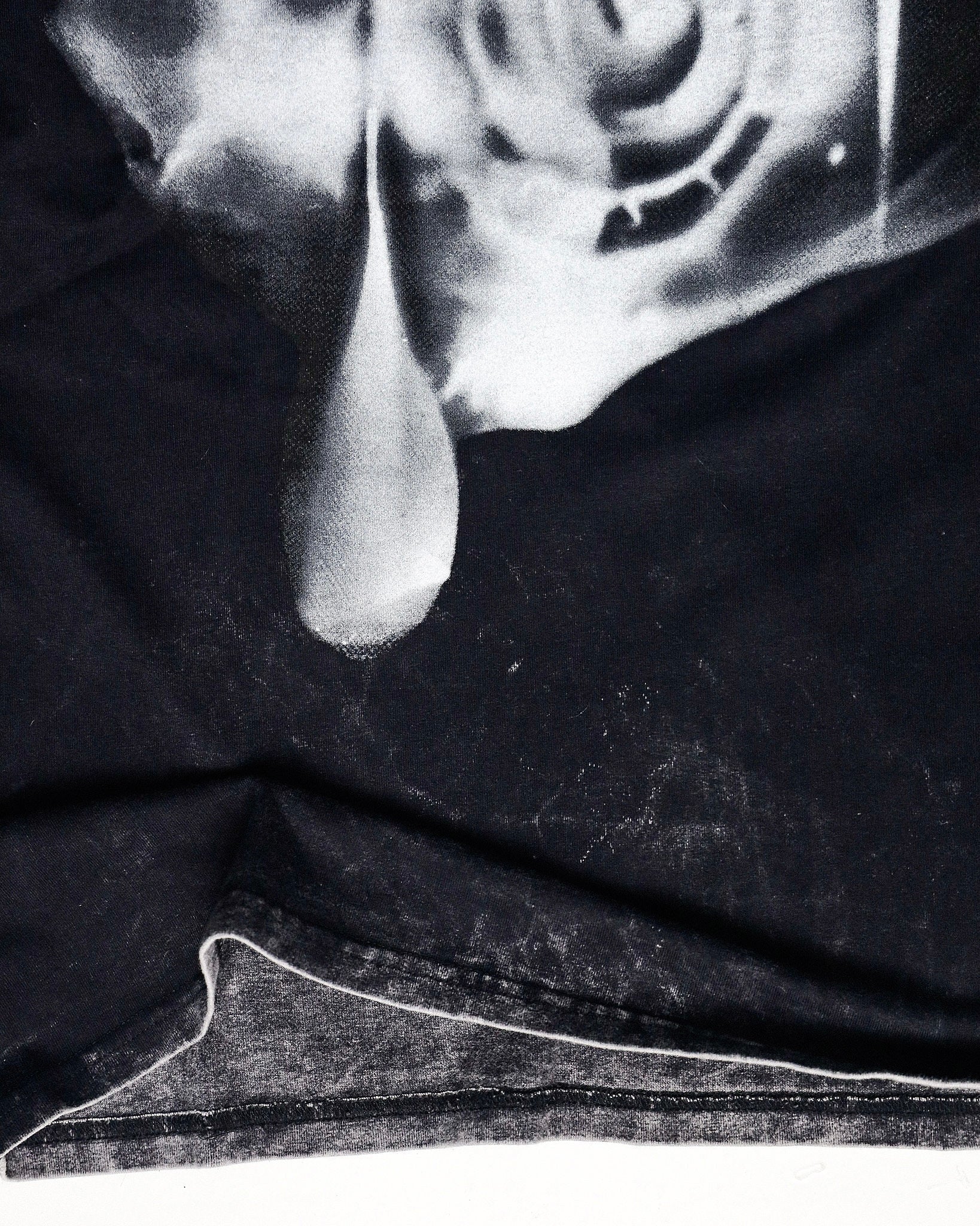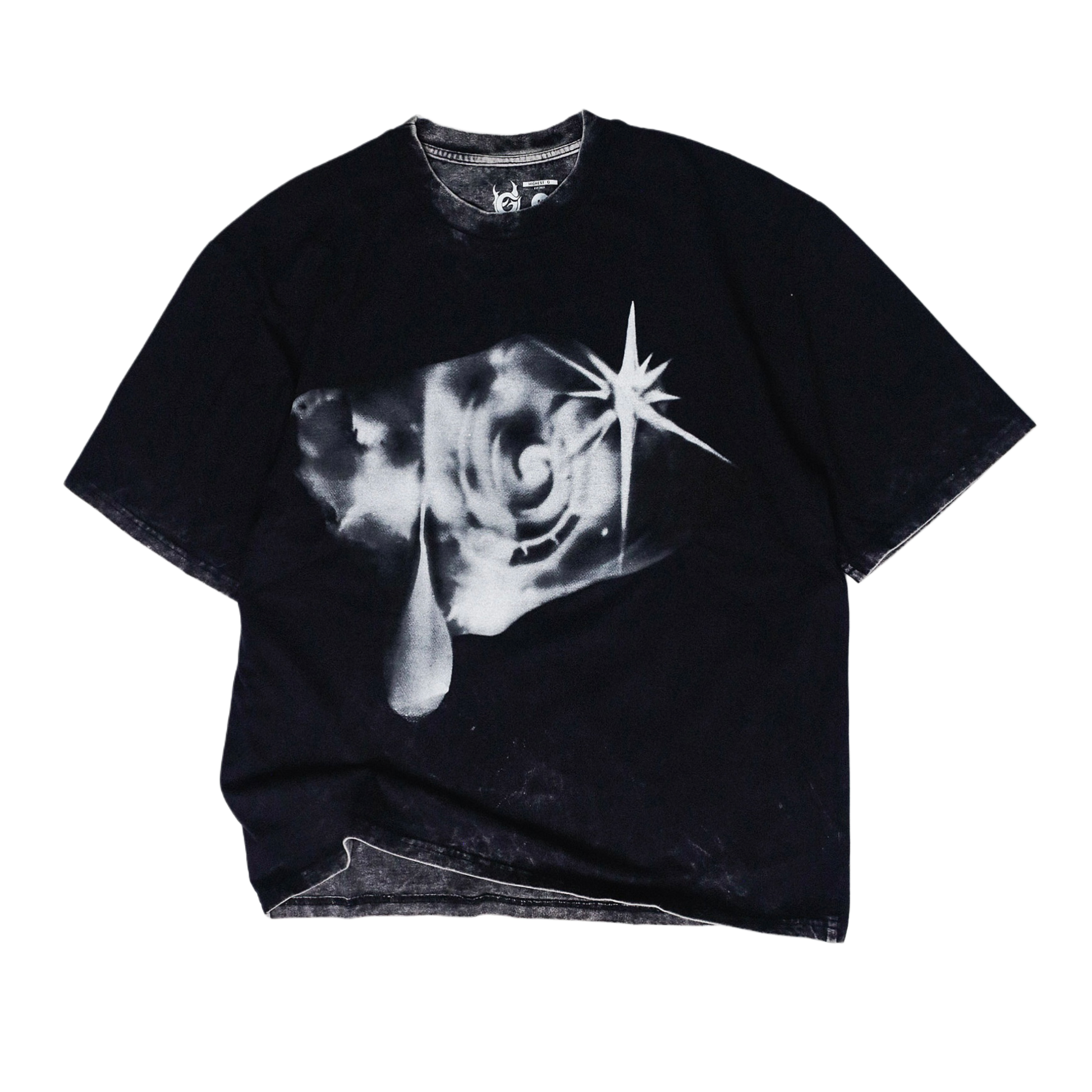Playera de algodón con proceso de lavado acid wash y estampado en serigrafia frente y espalda.