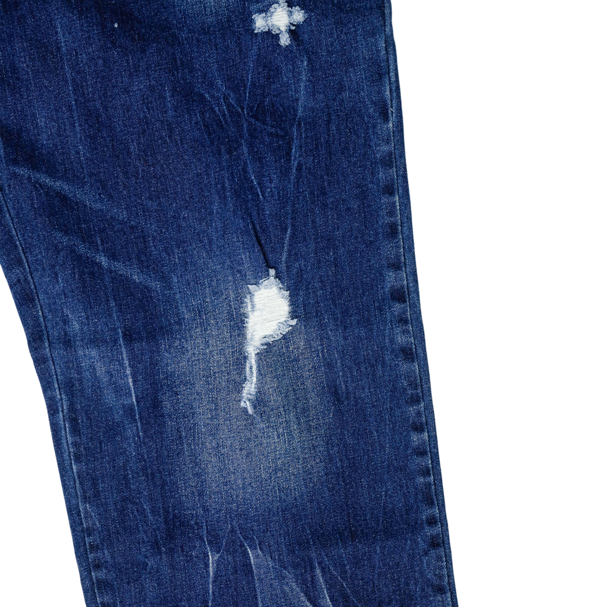Pantalón recto de mezclilla stretch con roturas y proceso de lavado stone-washed.