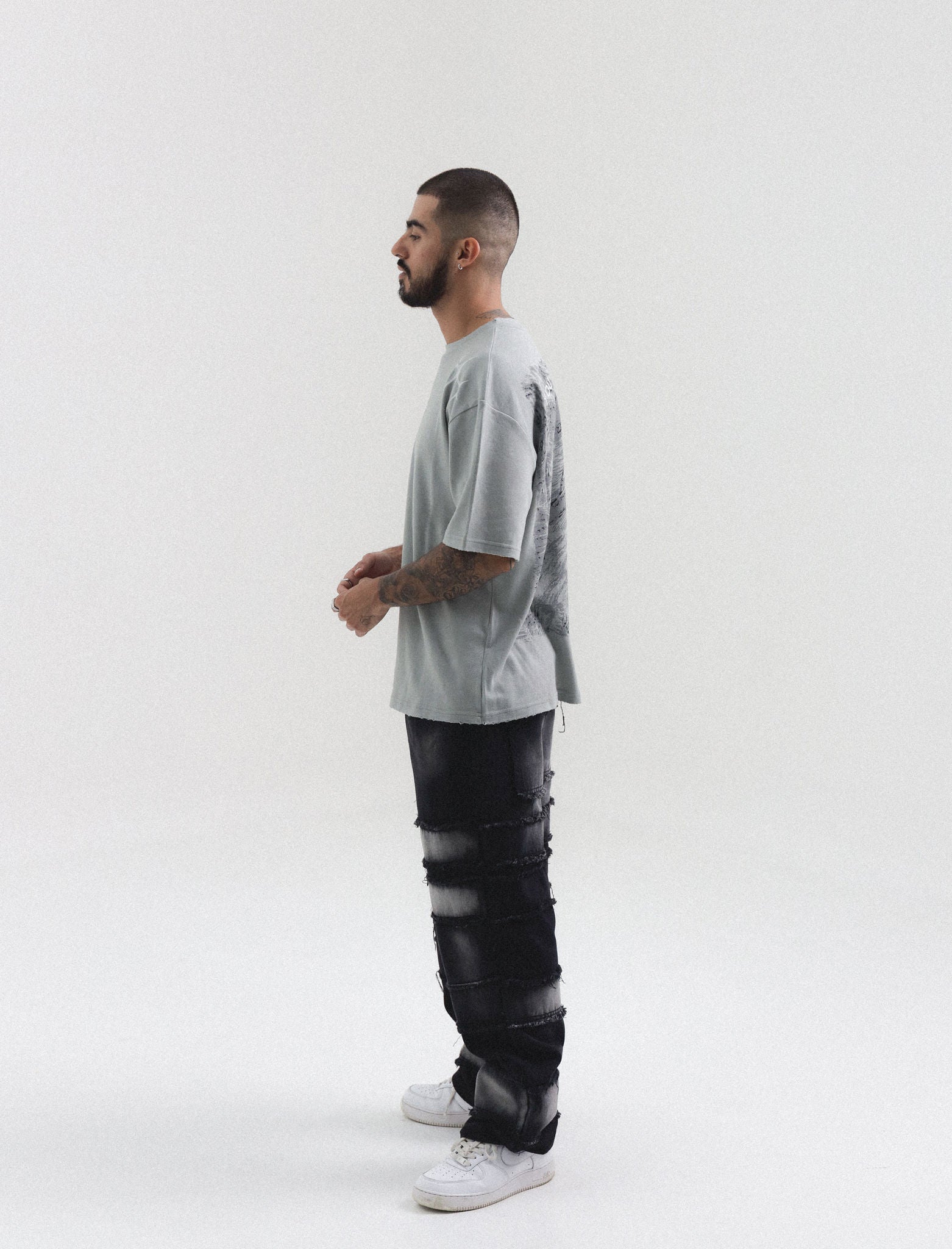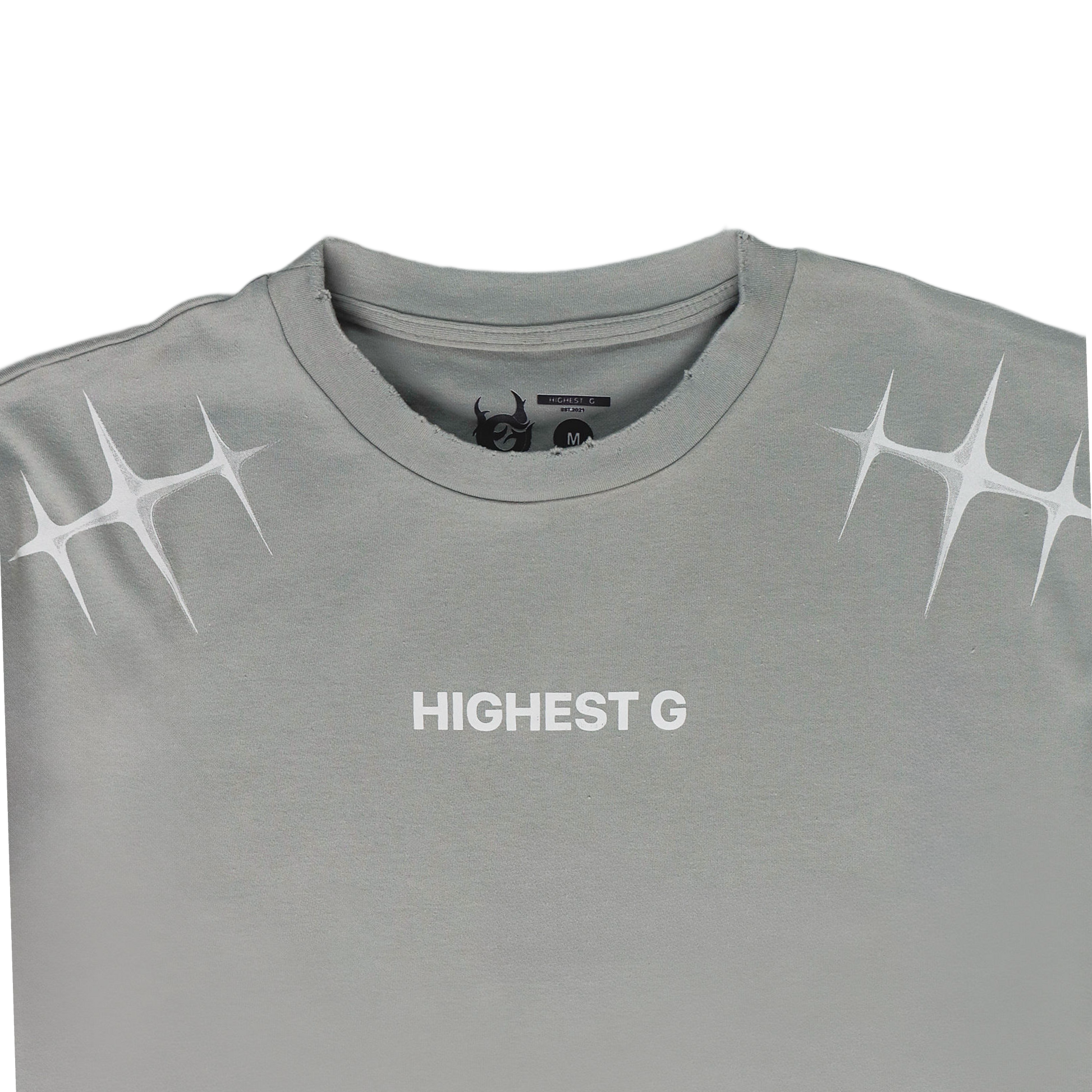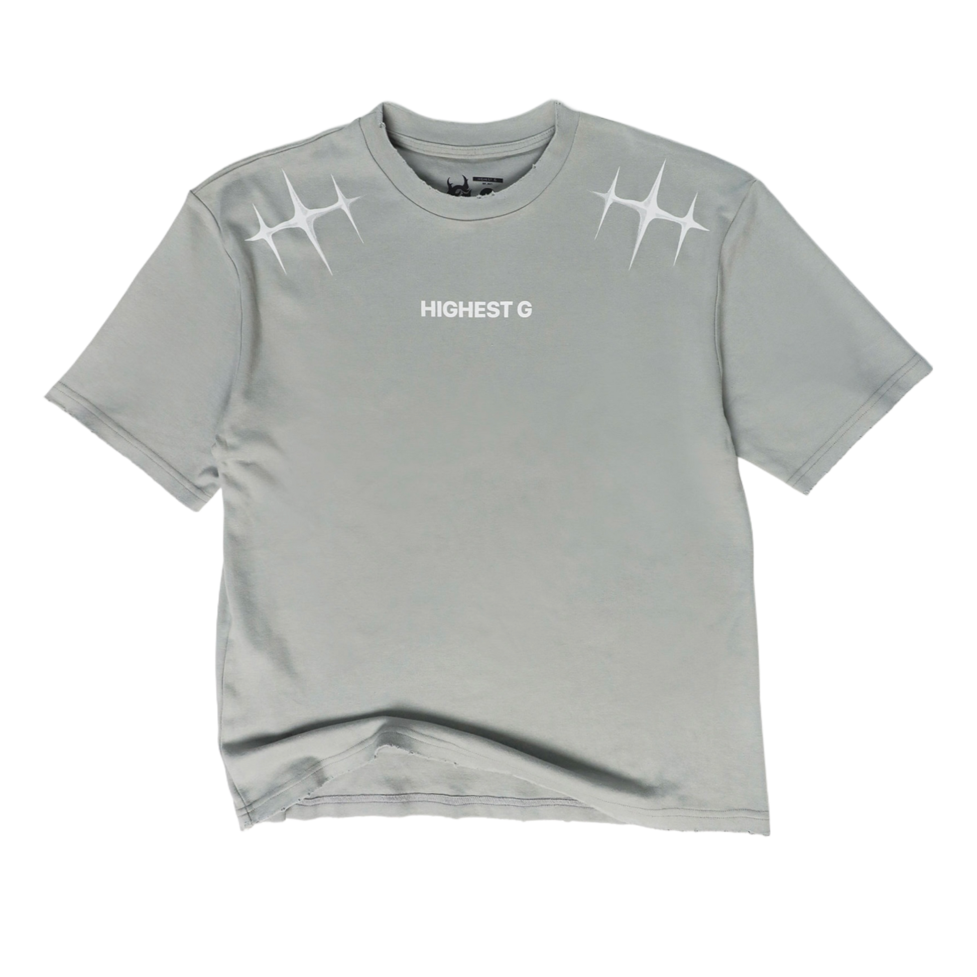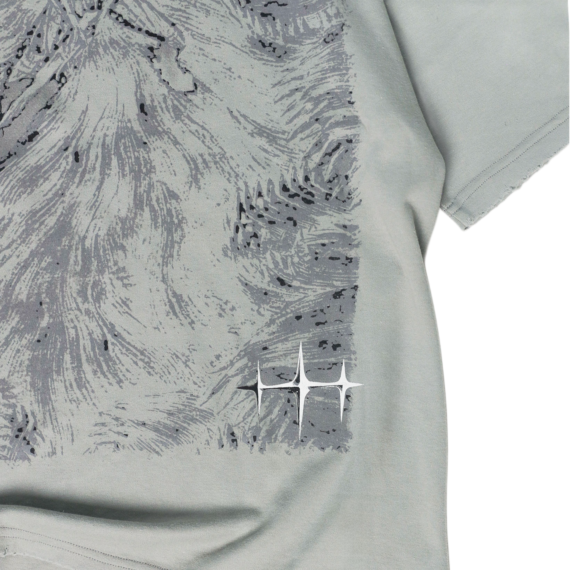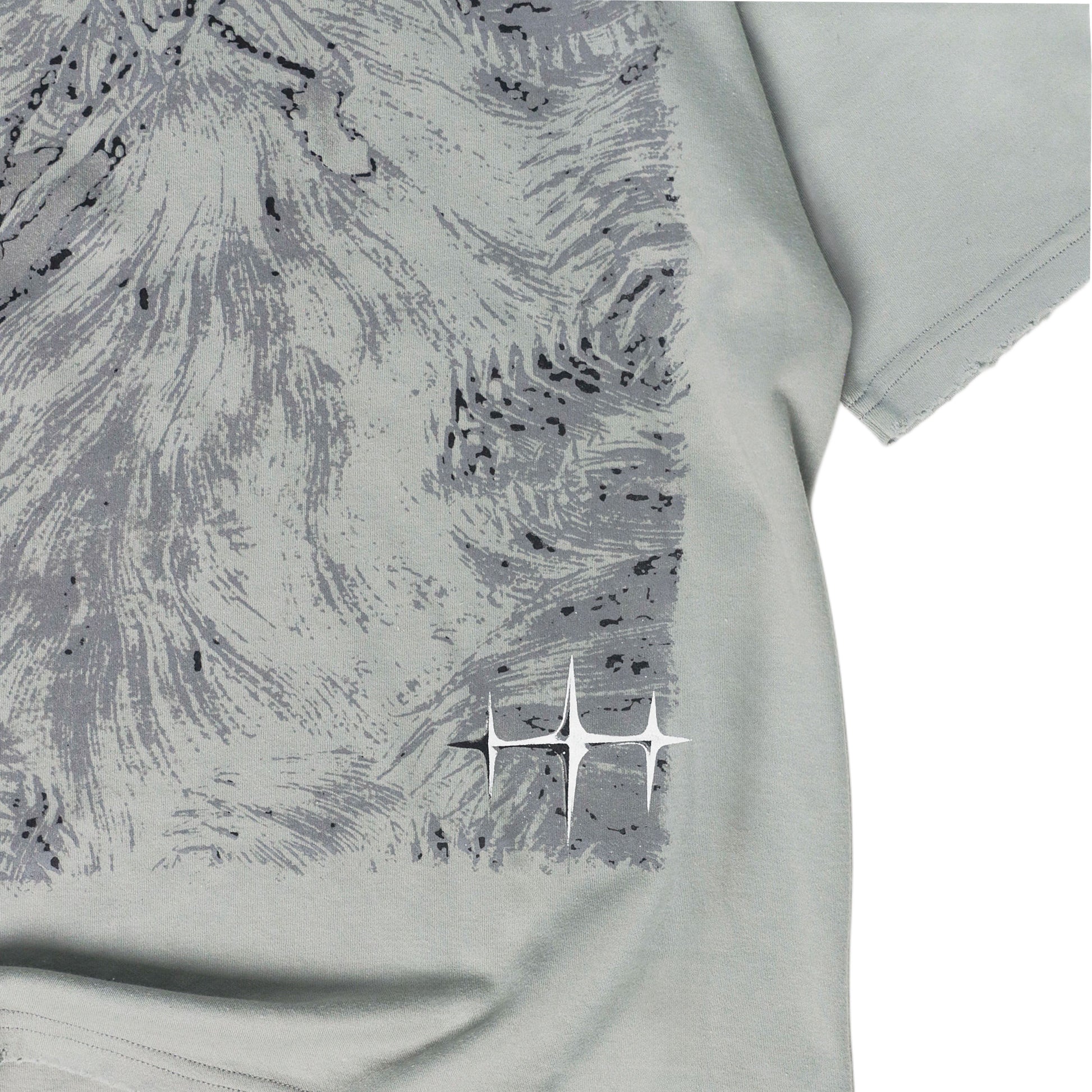 Playera de algodón con desgastes en bordes. Diseño en serigrafía frente y espalda.